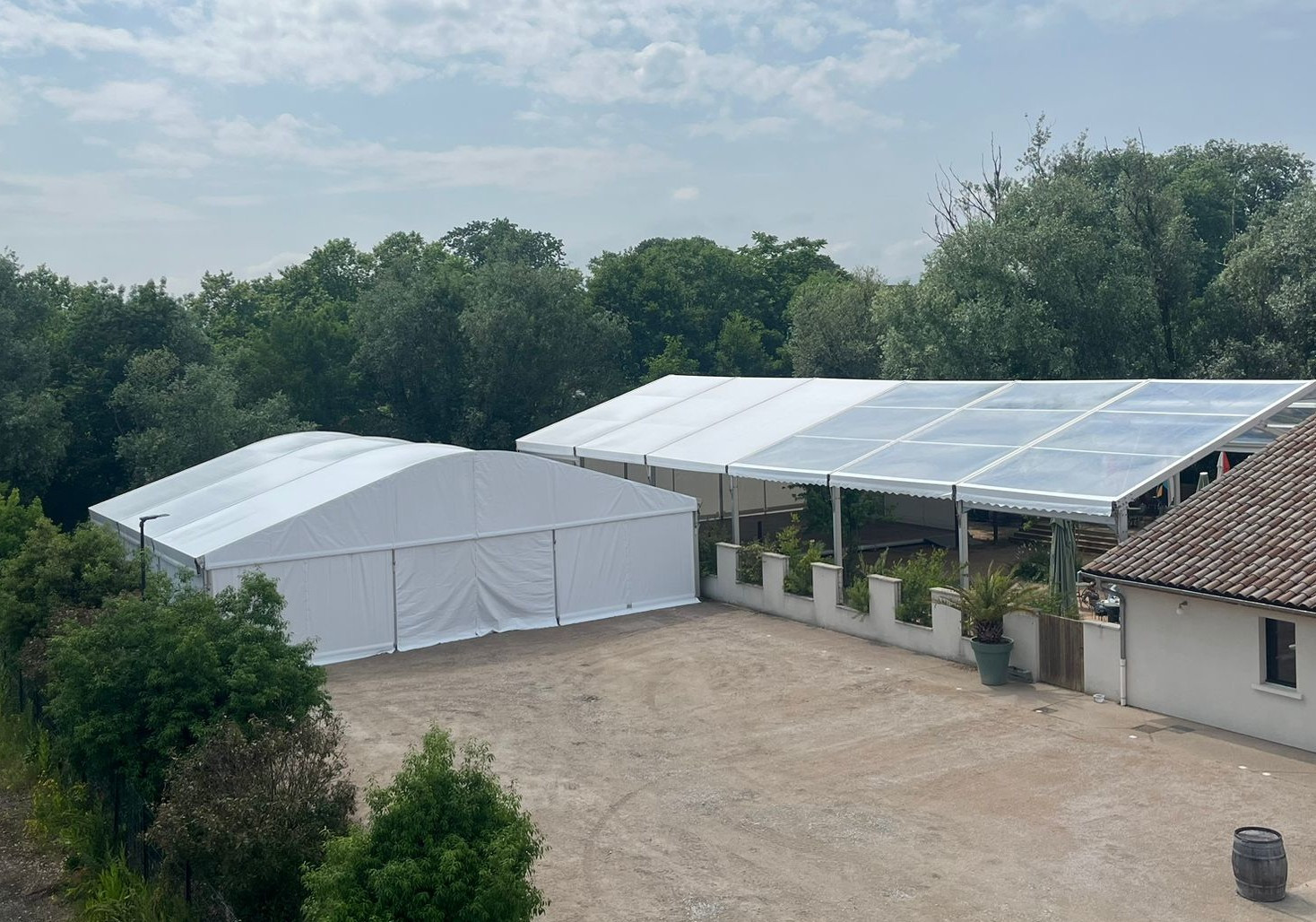 Location et installation de chapiteaux arqués pour événements et réceptions à Lyon, Mâcon, en régions Auvergne-Rhône-Alpes et Bourgogne-Franche-Comté.