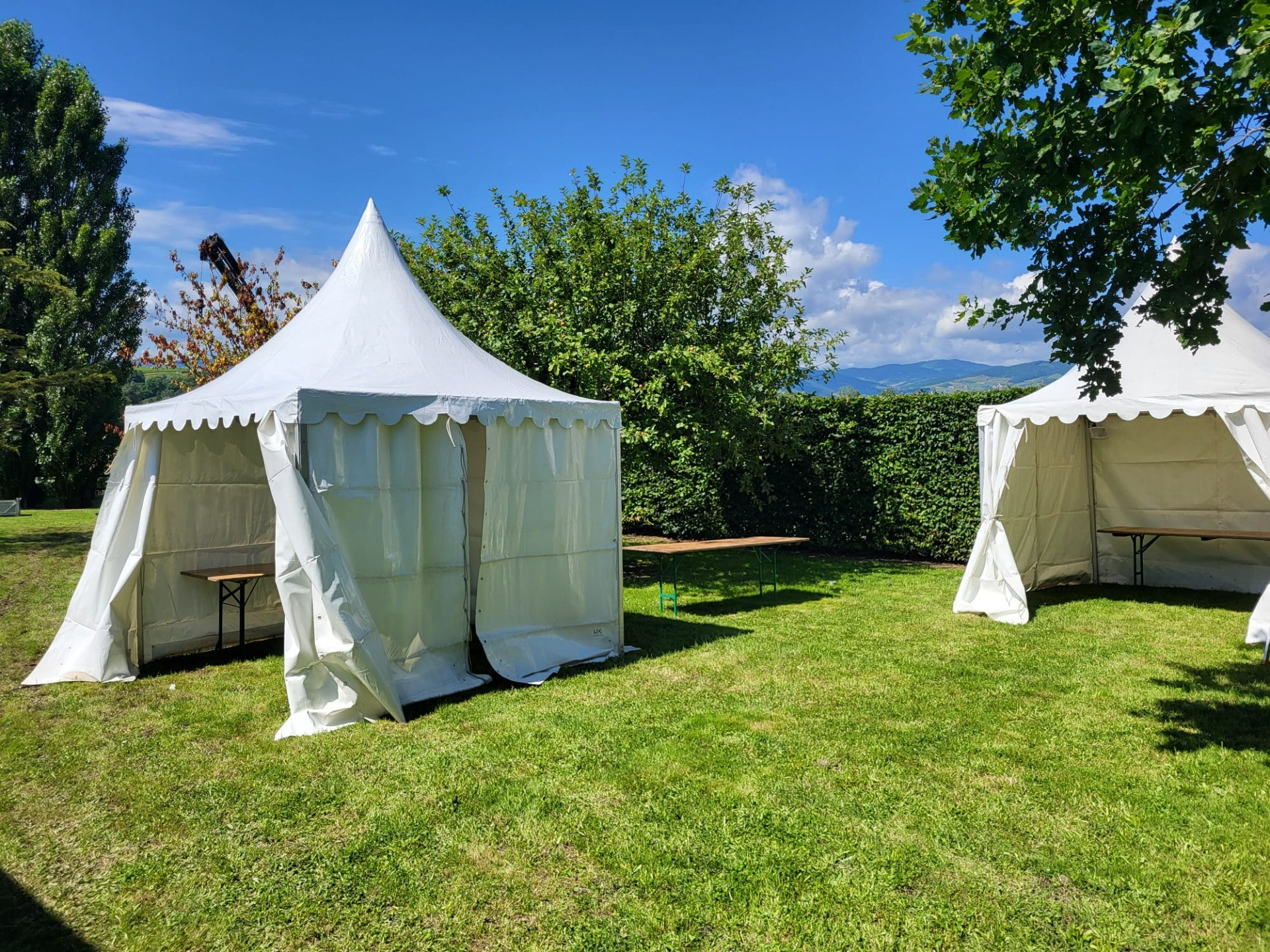 Location et installation de tentes Garden Cottage / Pagodes pour événements et réceptions à Lyon, Mâcon, en Auvergne-Rhône-Alpes et Bourgogne-Franche-Comté.