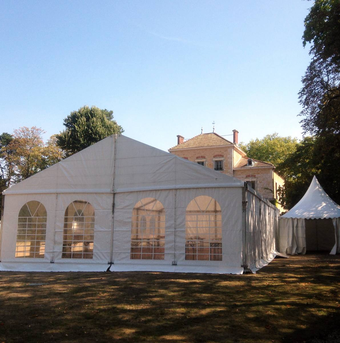 Les chapiteaux peuvent accueillir apéritif et repas ou banquets, y compris en complément d'un espace récepif tel qu'un château, mais aussi cuisines et espace de cérémonie laïque pour des mariages.