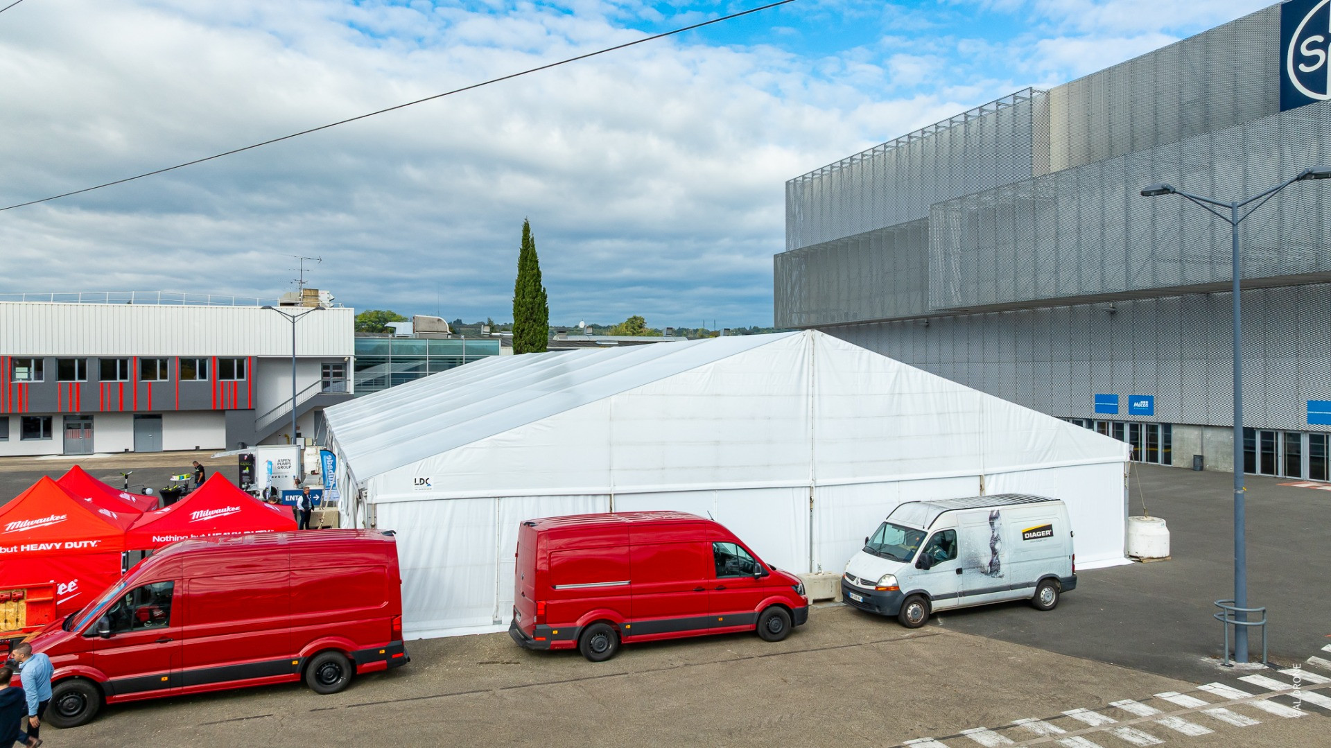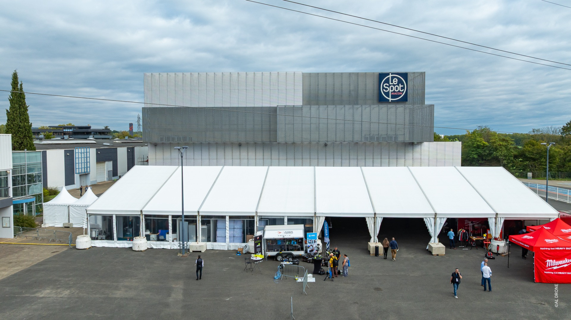 LDC Location de chapiteaux a agrandi les espaces réceptifs du Parc des Expositions - Centre de Congrès -Le Spot de Mâcon en Sud Bourgogne à l'occasion du salon professionnel Comptoir des fers - L'Envol en octobre 2025.