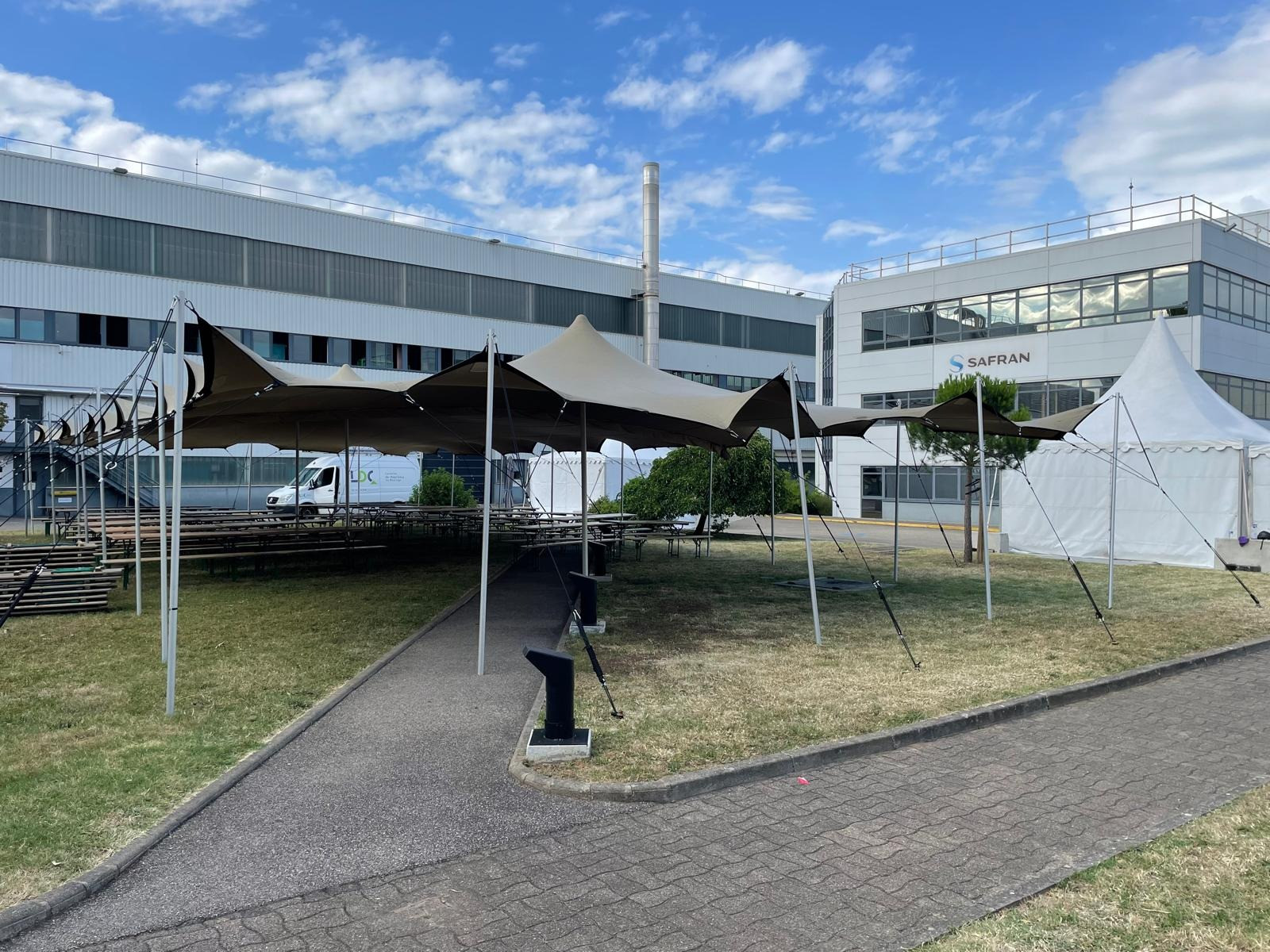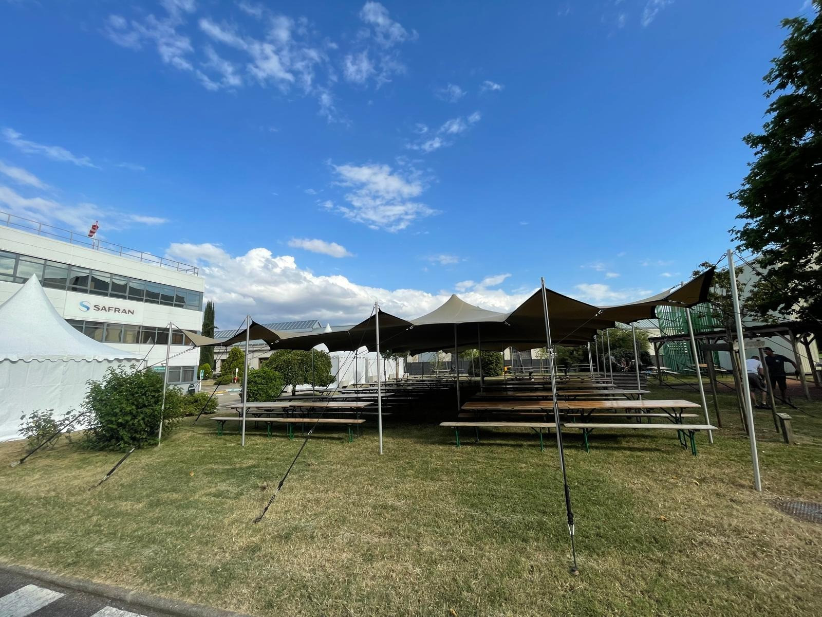 Apporter une touche d'originalité pour se différencier à l'occasion d'un événement d'entreprise : la tente strech fournie par LDC Location de chapiteaux a permis à Safran d'allier estéhtique et praticité pour leur événement 2025 à Lyon.