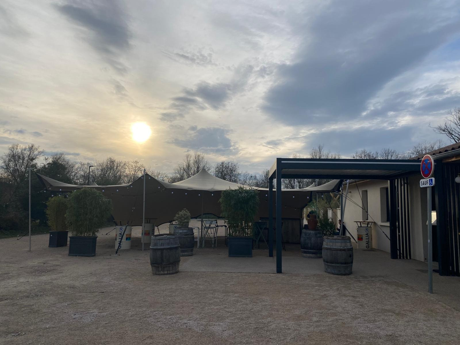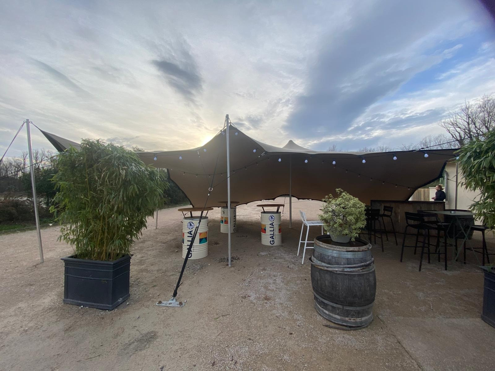 La tente stretch apporte une touche d'originalité pour s'adapter au standing du restaurant aux portes de Lyon.