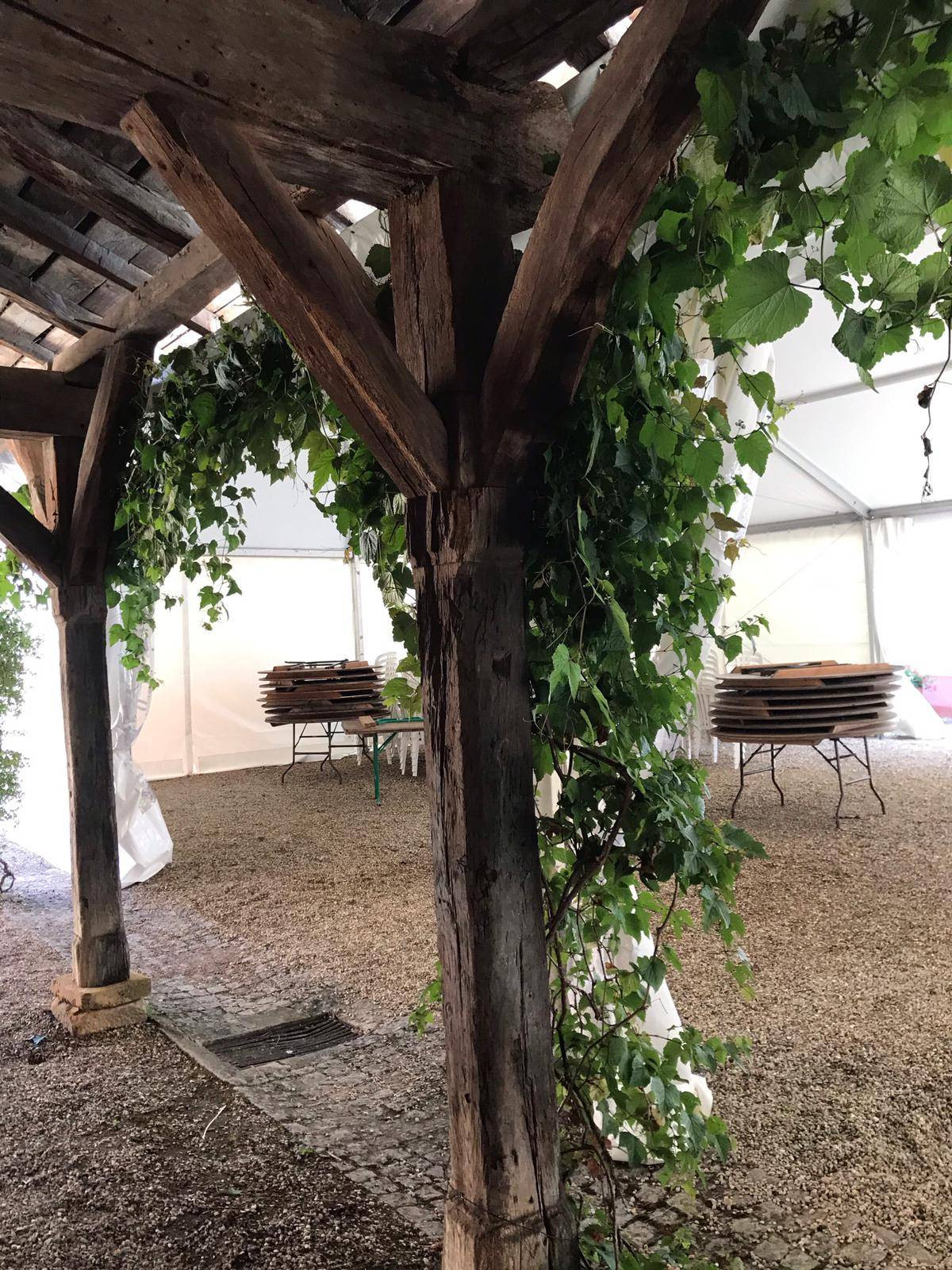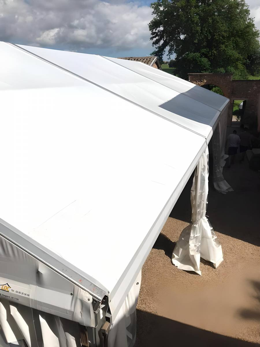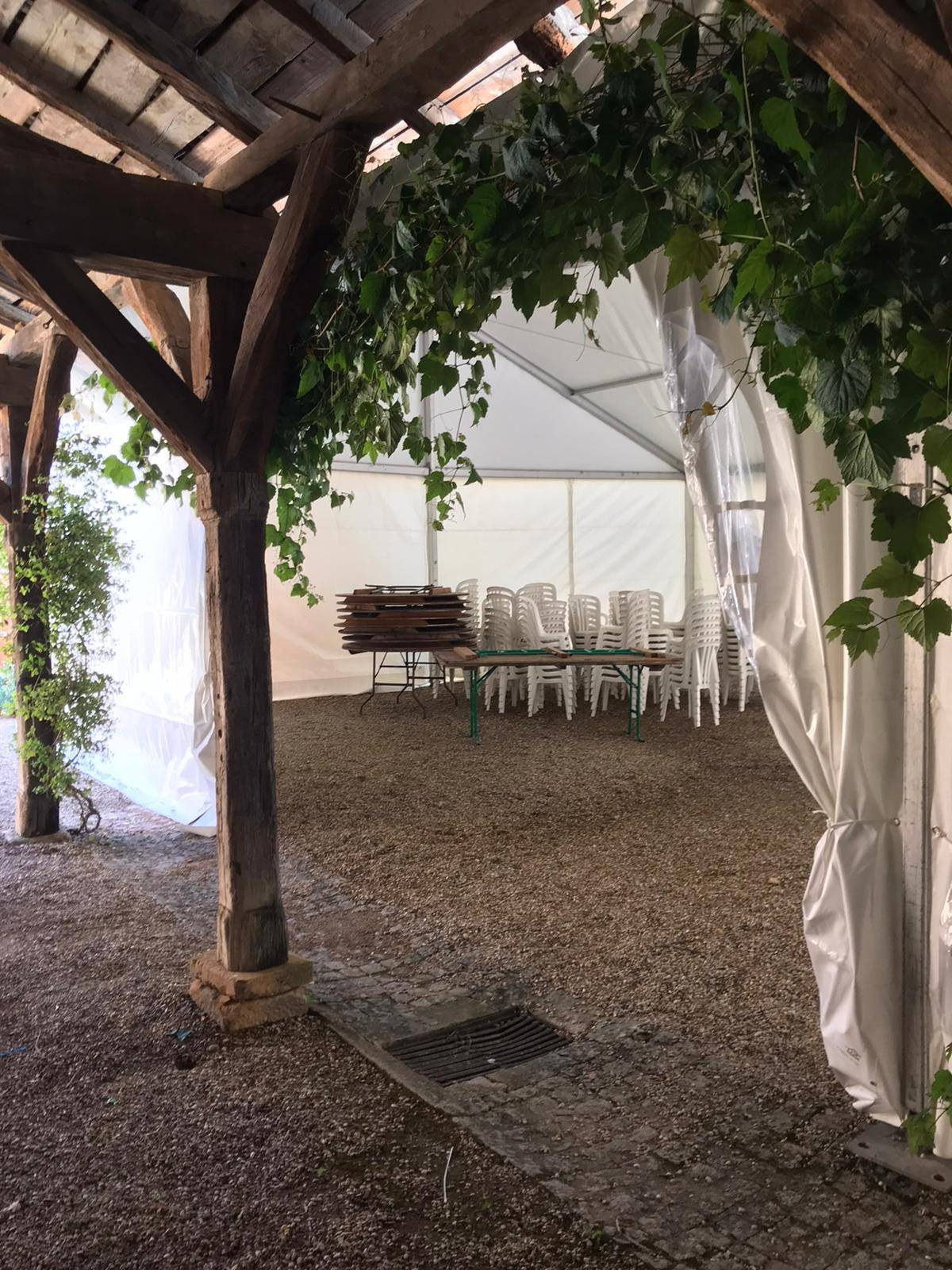 Pour célébrer leur mariage dans la demeure familiale, un couple a fait appel aux services de LDC - location de chapiteaux. Nous avons monté une tente Traditionnelle de 10m x 15m dans la cour, que nous avons complétée avec du mobilier.