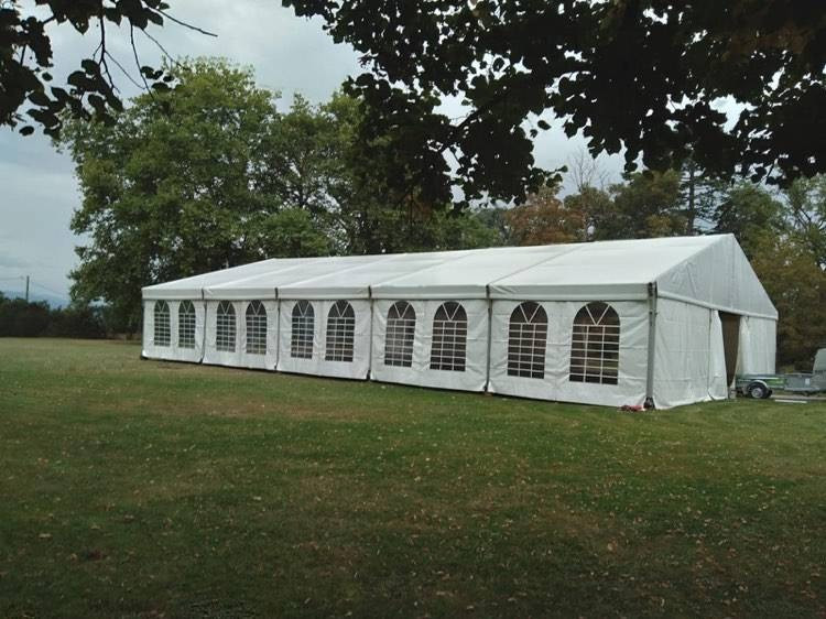 Un grand chapiteau peut accueillir le banquet ou la soirée dansante d'un événement festif, de plus petits chapiteaux peuvent être loués en complément pour la cuisine, l'apéritif, la cérémonie.