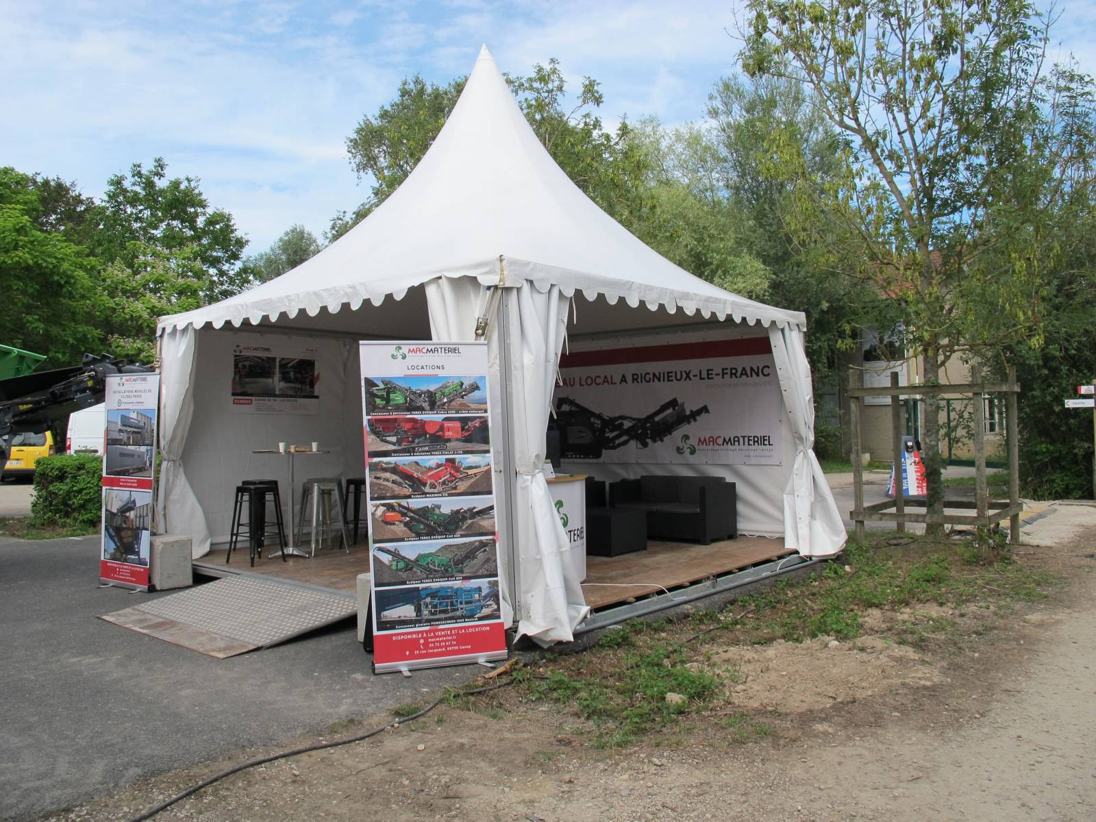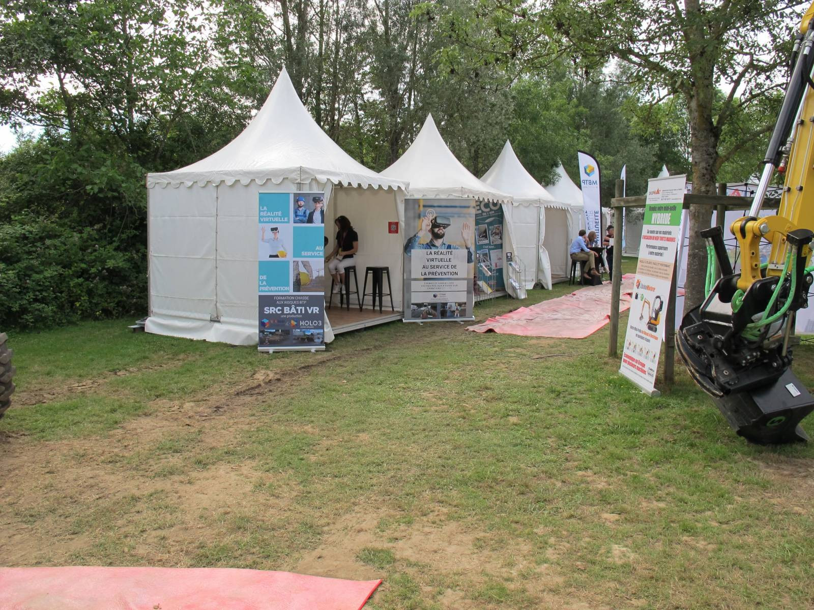 Pour sa 6ème édition, le salon BTP pose ses valises au Parc des Oiseaux de Villars-les-Dombes. Pour l'occasion, nos équipes ont monté une trentaine de Garden 5x5 m avec plancher et un chapiteau traditionnel 10x15 m faisant office de restaurant.