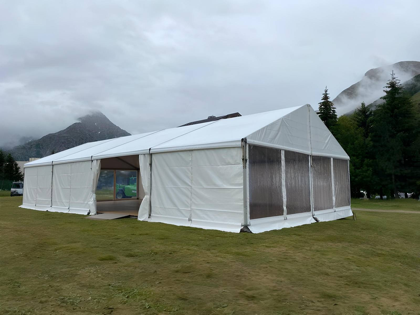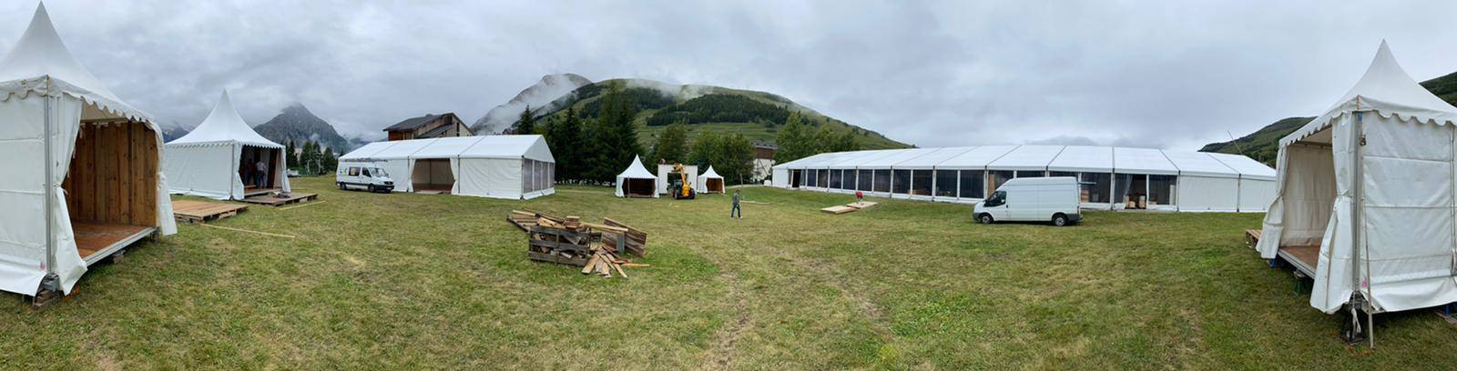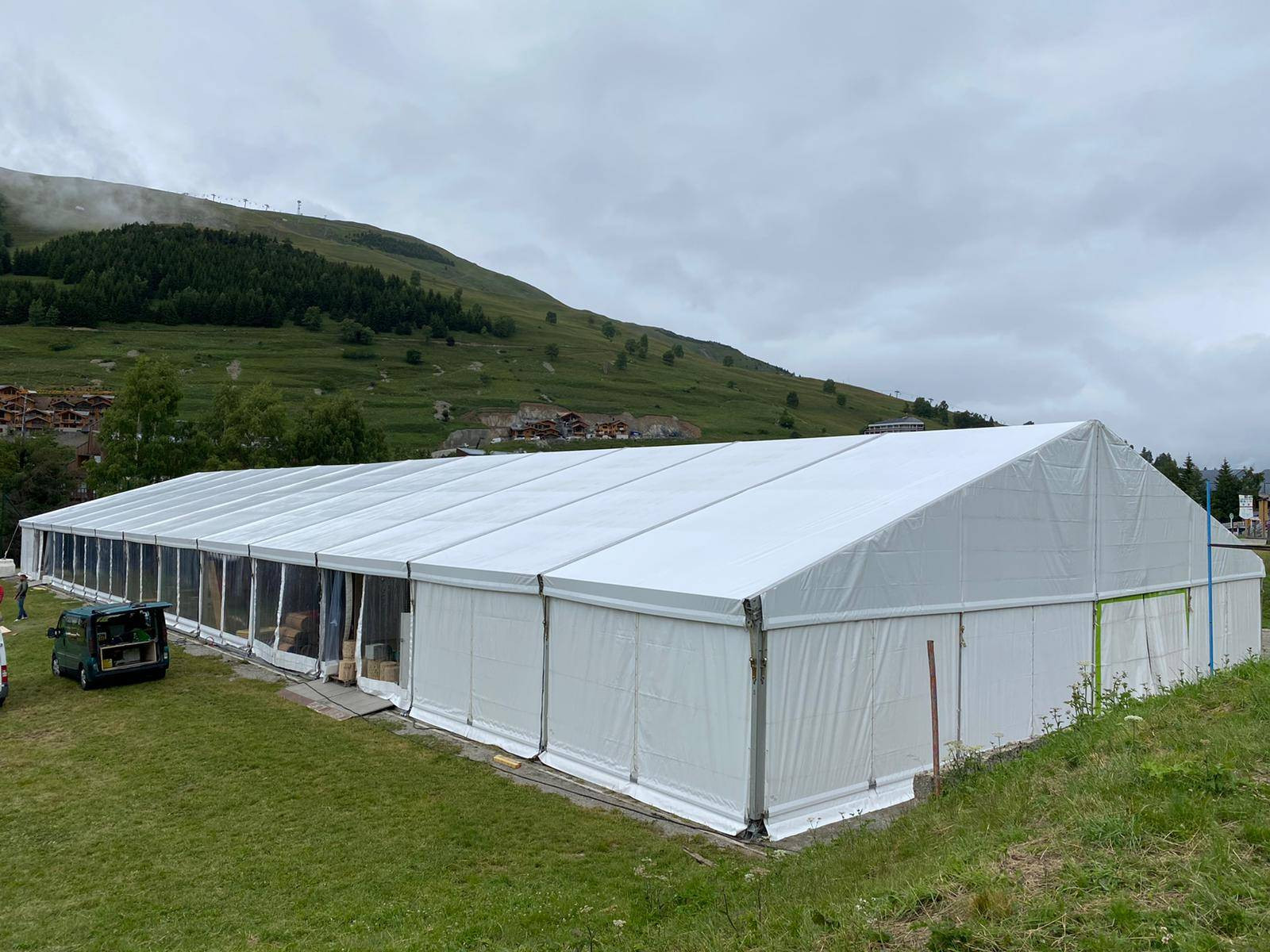 Au cœur des montagnes, dans la station des Deux Alpes en Isère, nous avons monté plusieurs chapiteaux, dont une tente Traditionnelle 10m x20m pour le salon Alpes home, événement ouvert aux particuliers et professionnels pour valoriser l'architecture, la décoration et l'art de vivre en montagne. Les structures fournies par LDC - location de chapiteaux ont permis aux exposants de présenter leurs produits dans un cadre idyllique.