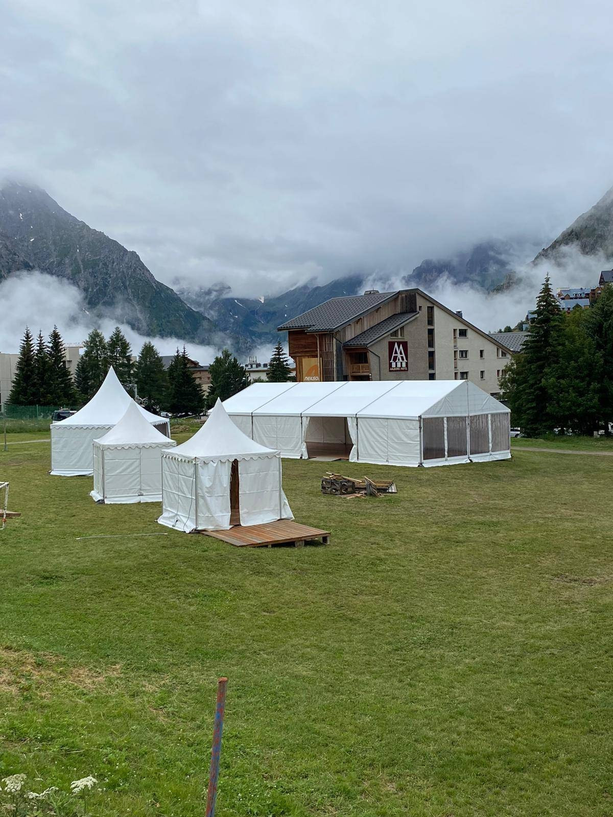 Au cœur des montagnes, dans la station des Deux Alpes en Isère, LDC - location de chapiteaux a monté plusieurs chapiteaux, dont une tente Traditionnelle 10m x20m pour le salon Alpes home. Cet événement économique était ouvert aux particuliers et professionnels pour valoriser l'architecture, la décoration et l'art de vivre en montagne. Les chapiteaux fournis par LDC - location de chapiteaux ont permis aux exposants de présenter leurs produits dans un cadre idyllique.