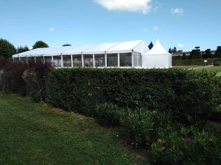 Afin de réunir ses collaborateurs en fin d'année, une entreprise de la région lyonnaise, Groupama Auvergne Rhône-Alpes, à fait appel à nos services. Nous avons monté une tente Traditionnelle de 15m x30m dans le parc du château de Pizay dans l'Ain, entre Lyon, Mâcon et Bourg-en-Bresse, pour permettre aux salariés de travailler, se réunir et se divertir dans les meilleures conditions.